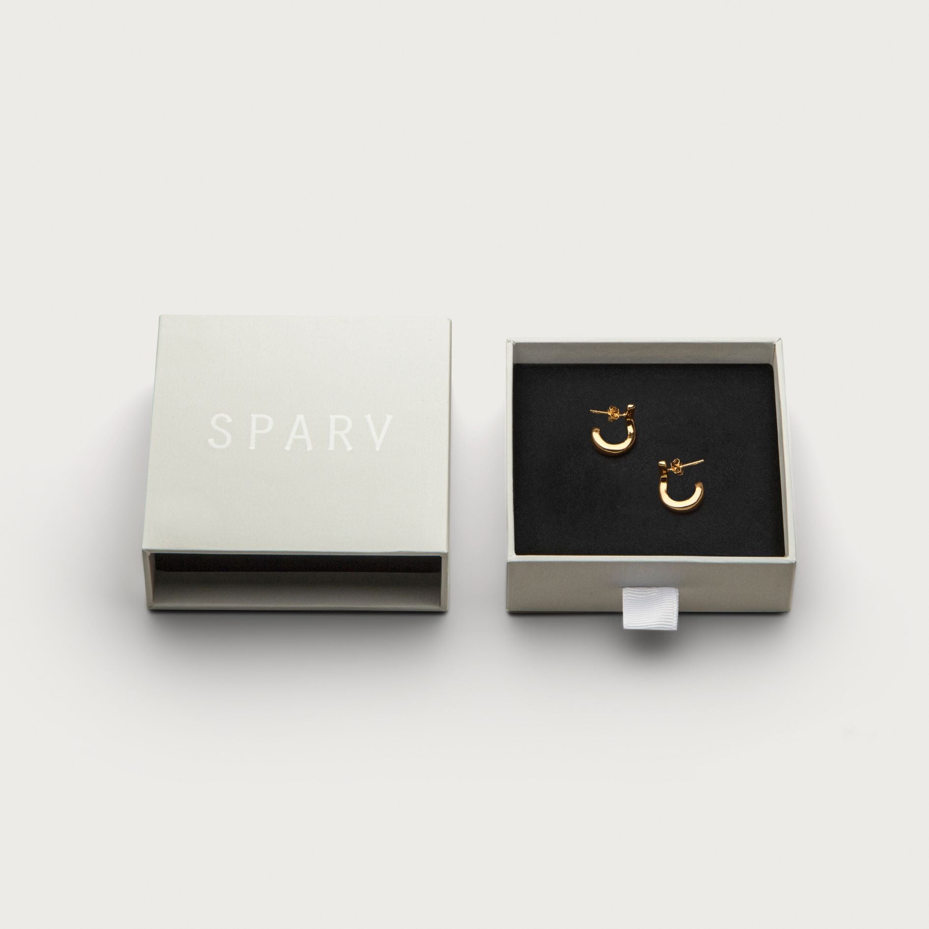 Jolly are sold in pairs and comes in two thoughtfully selected qualities: gold-plated (18K) and silver-plated brass. All our jewelry is nickel free and our gold plated jewelry has an extra thick layer of plating of 18K so you get a piece that is made to last. All carefully wrapped in handmade jewelry boxes made of recycled and FSC certified paper.