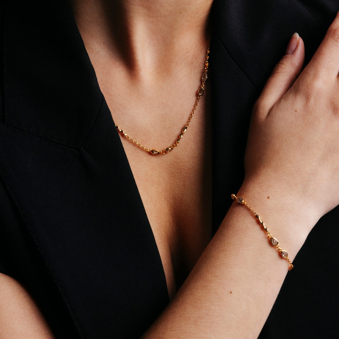Twisted links with hand-set zircons. A necklace where small details make all the difference.