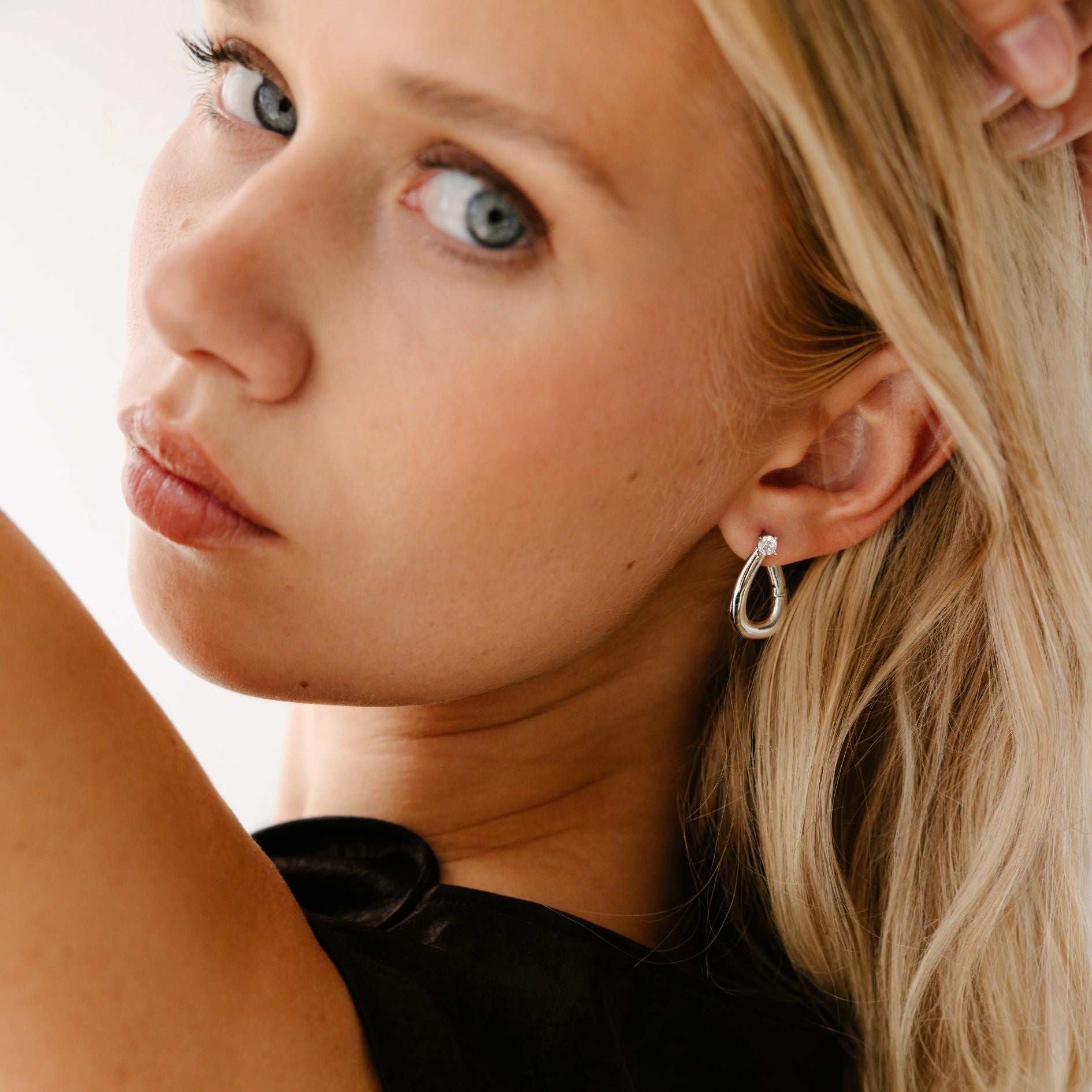 Sleek, simple, and slightly oversized. These hoops give your morning look a little lift.