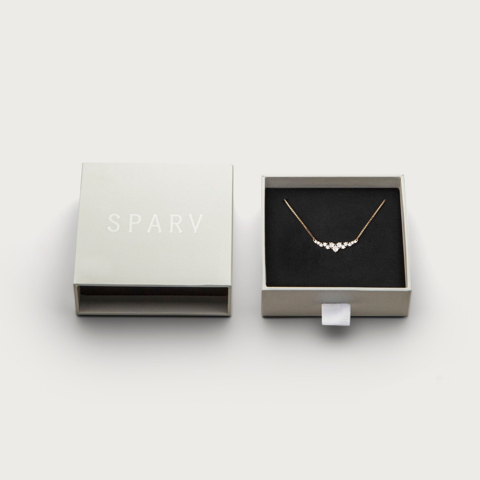 Add a sparkle to your everyday look and discover our minimalistic necklace Skyfall. Designed in a truly unique style where every stone has been added by hand.