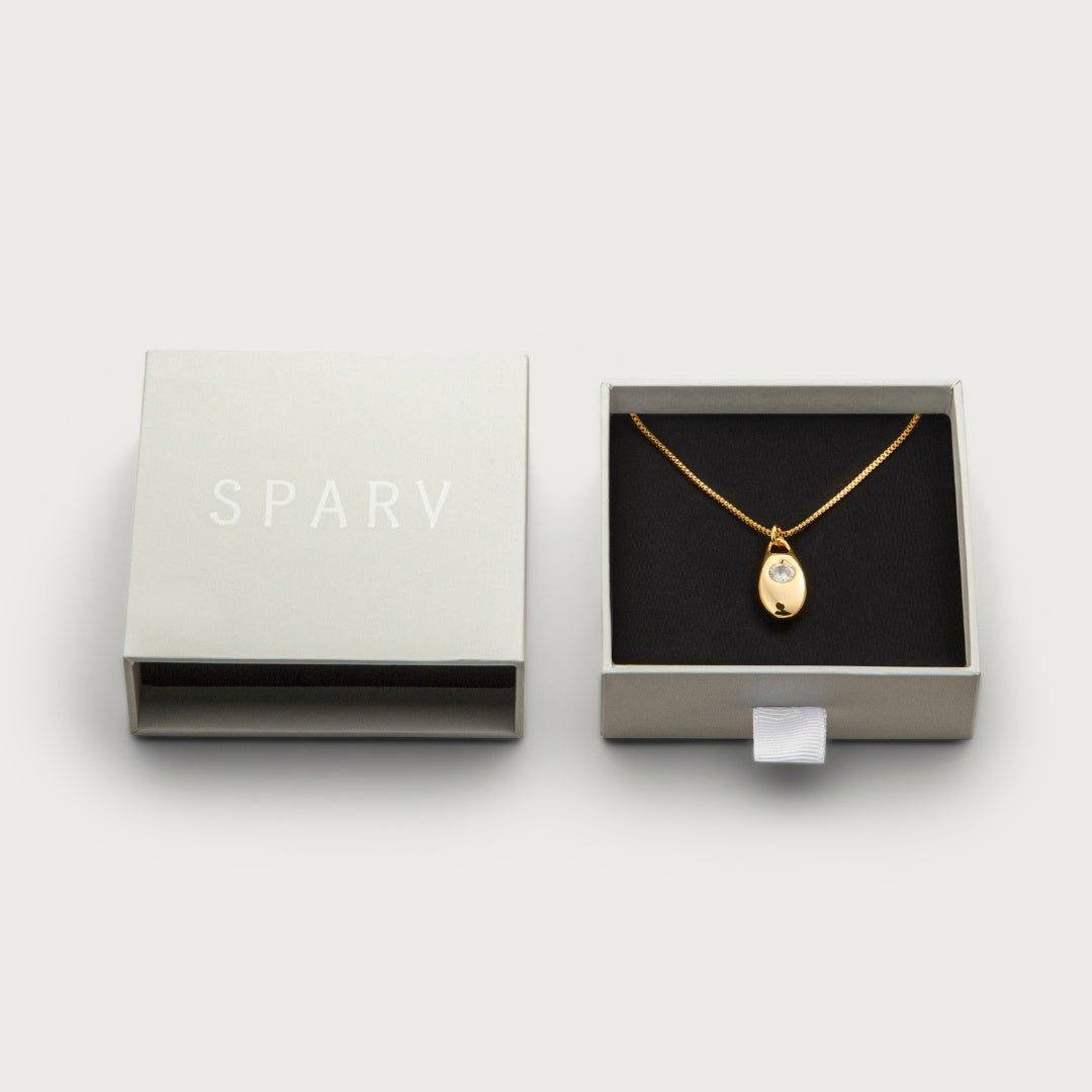 Still Here comes in two thoughtfully selected qualities: gold-plated (18K) and silver-plated brass. All our jewelry is nickel free and our gold plated jewelry has an extra thick layer of plating of 18K so you get a piece that is made to last. All carefully wrapped in handmade jewelry boxes made of recycled and FSC certified paper.